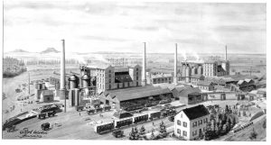 Bereits vor Abschluss des Abkommens hatte Norbert Metz 23 Hektar Land am Rand von Esch/Alzette und Schifflingen sowie Schloss Berwart erworben. Der Standort der zukünftigen Anlage lag in unmittelbarer Nähe der Bergwerke auf dem „Lallengerbierg“ und auf dem „Gaalgebierg“. Die Fabrik wurde nach den Plänen des Ingenieurs Jean-Baptiste Kintzelé (1822-1912), der auch eine Gipsfabrik in Heisdorf besaß, auf einem Plateau gegenüber dem „Lallengerbierg“, nahe der Eisenbahnlinie, errichtet. 1884 ließ er ein schönes Haus auf der „kleng Plaz“ (kleiner Platz, seit 1923 Norbert-Metz-Platz) errichten.