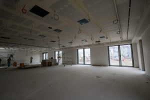 1.000 Sitzplätze wird es darin geben und der Boden soll mit Industrieparkett belegt werden. „Die Deckenhöhe ist höher als früher“, bestätigt Ralf Junges, Architekt im ausführenden Büro Schumacher Schmitz Architectes, die Wirkung des neuen Saals. Sie ist jetzt knapp zehn Meter hoch. So ein Saal muss bespielt werden.