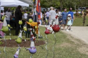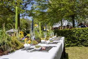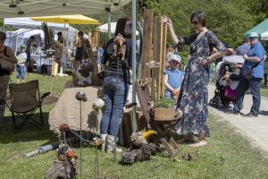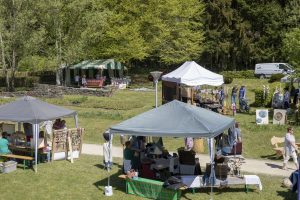 Der Garten, der sich bei strahlendem Sonnenschein in seiner ganzen Frühlingspracht zeigte, ist schon ein Kunstwerk an sich. Hier fanden die 50 Künstler und Kunsthandwerker den idealen Rahmen, um ihre Werke vorzustellen. Die Weitläufigkeit des Geländes ermöglichte es trotz regen Besucherzuspruchs, angenehm zwischen den verschiedenen Ausstellungsständen zu flanieren, ohne dass Gedränge entstand.