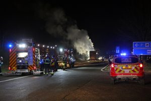 Ein Sattelauflieger stand am Montagmorgen gegen 5.45 Uhr in Flammen. Der Autobahnparkplatz Markusberg in der Nähe zur Luxemburger Grenze in Richtung Trier war am frühen Morgen Schauplatz eines größeren Feuerwehreinsatzes.