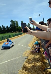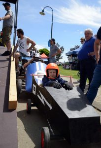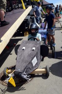 Beim Finale am frühen Sonntagabend waren so nur noch zwölf von den anfangs 17 Seifenkisten dabei. Unschlagbar war das „TüTüTü“ der lokalen Feuerwehr: Bei allen Durchgängen schaffte es die Bestzeit!