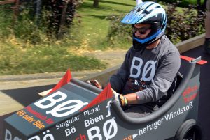 Nicht immer ging es gut: Das „BØ-Mobil“ von Boris Zickes etwa (siehe auch unsere Printausgabe vom vergangenen Dienstag) sollte schon im ersten Rennen kippen, der Fahrer wurde leicht am Arm verletzt. Auch das „Cookie-Mobil“, dem Krümelmonster gewidmet, schied aus: Im Slalom versagte die Steuerung, der Renner fuhr gegen die Strohballen, den beiden Pilotinnen geschah nichts.