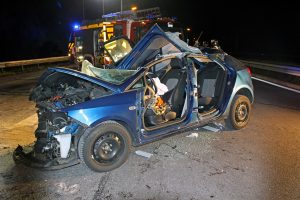 Das Auto wurde durch den Aufprall zurück auf die Autobahn geschleudert. Die Fahrerin des Autos verletzte sich schwer und musste mit dem hydraulischen Rettungsgerät aus dem Fahrzeug befreit werden. Sie wurde ins Krankenhaus eingeliefert. Der Lkw-Fahrer wurde nicht verletzt. Für die Dauer der Aufräumarbeiten musste die Autobahn komplett gesperrt werden.