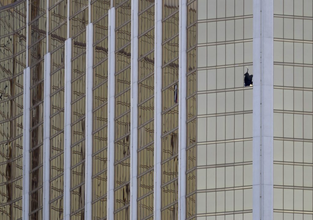 Dort vorne ragt es auf, das „Mandala Bay Resort and Casino“. Weiträumig abgesperrt schimmert sein kaltes Gold in den Oktoberabend. Zwei ausgezackte Löcher klaffen in der perfekten Oberfläche. Hier hämmerte Stephen Paddock, wohl mit einem Spezialwerkzeug, zwei Löcher in die raumschiffgleiche Außenhaut, hinter der er Podeste für seine Gewehre errichtet hatte. Dann zog er den Abzug. Nur zum Nachladen ließ er los. Solange, bis die Waffe angeblich so stark rauchte, dass sie den Feueralarm auslöste. Er alleine dort oben in seinem Zimmer. Mehr als 20 000 Feiernde unten, beim Country. Und keiner wusste, woher der Tod kam.
