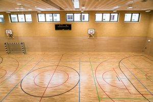 Die Logopädie, inklusive Diagnostik, hat auf „Lenkeschléi“ ebenfalls ein neues Zuhause gefunden. Die Produktionsküche ähnelt einer Restaurantküche. Dort können in ein paar Wochen 400 Essen produziert werden. Im unteren Stockwerk befindet sich die schuleigene Sporthalle mit Umkleiden. Die große Halle kann, anhand einer Trennwand, in zwei geteilt werden, damit mehrere Klassen Sportunterricht abhalten können.