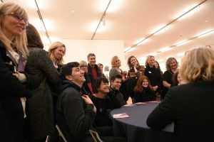 Darauf folgend führte Lars Schmitz, Mitglied des Kollektivs Richtung22, ein Rundtischgespräch mit Augenmerk auf die Kultur. Dieses Kollektiv erregte schon mehrmals hierzulande die Gemüter, sei es mit Filmen wie „Ons Identitéit“ oder „Ons Educatioun“, sei es mit berechtigten Provokationen, wie eine neue Nationalhymne mit Kreide vor die Philharmonie zu sprayen, oder durch das Theaterstück „Lëtzebuerg, du hannerhältegt Stéck Schäiss“. Schmitz bemängelte erwartungsgemäß, dass es wegen des vorherrschenden sozialen Drucks sehr schwierig sei, als junger Künstler Fuß zu fassen. Aus diesem Grund sollten weitere öffentliche Ensembles entstehen: Diese werden mehr Eigenproduktionen erzeugen. Zudem sollten die öffentlichen Gelder brüderlicher verteilt werden.