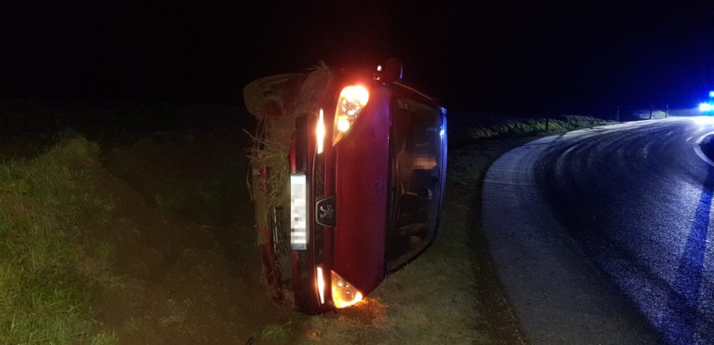 Am Dienstagmorgen gegen 5.30 Uhr landete ein Autofahrer auf der Stecke von Dalheim nach Medingen mit seinem Auto im Straßengraben. Sein Wagen kam in einer Kurve von der Fahrbahn ab und blieb auf der Fahrerseite liegen.