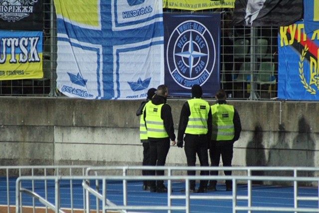 Direkt neben dem Konterfei von Bandera hing eine Fahne der rechtsextremen ukrainischen Partei Prawyj Sektor. Sie spielte eine entscheidende Rolle bei den Kämpfen gegen die Polizei auf dem Maidan-Platz und bezeichnet Homosexualität als „unnatürlich“. Außerdem sagen Augenzeugen, dass nachgeahmte Affengeräusche von der Tribüne ertönten, als Gerson Rodrigues in der Nähe der Kurve war.