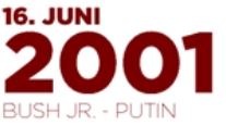Am Ende ihres Treffens am 16. Juni 2001 in Ljubljana, Slowenien, meinte George W. Bush, dass sein Gegenüber Wladimir Putin ein „geradliniger und vertrauenswürdiger“ Mann sei. Bushs damalige Sicherheitsberaterin Condoleezza Rice urteilte später, dass diese Einschätzung ein „ernsthafter Fehler“ gewesen sei. Bei dem Treffen ging es unter anderem um Waffenkontrolle sowie um die Souveränität und territoriale Integrität der Ukraine und Georgiens. (Foto: AP/J. Scott Applewhite)