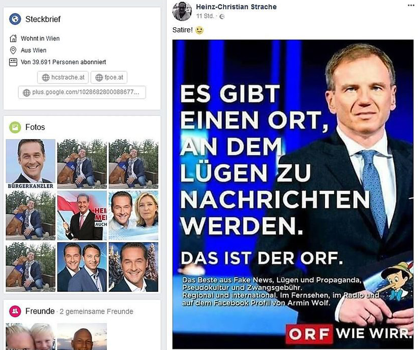 Sicher auf seiner Seite kann Steger Vizekanzler Heinz-Christian Strache wähnen. Kurz vor Stegers Aussagen hatte der FPÖ-Chef den ORF allgemein bei einer öffentlichen Rede angegriffen: „Mich wundert es ja nicht mehr, wenn die Leute sagen: Dem ORF glaube ich nicht einmal mehr noch die Uhrzeit. Wollt ihr dafür wirklich noch Zwangsgebühren zahlen?“ Und zusätzlich hat er dessen Anchorman Armin Wolf auf Facebook der Lüge bezichtigt, indem er ein bearbeitetes Foto postete, das Wolf mit ORF-Logo neben dem Satz „Es gibt einen Ort, an dem Lügen zu Nachrichten werden“ zeigt.