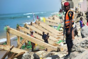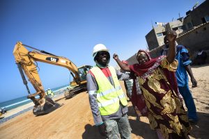 An der Küste von Saint-Louis, wo der Anstieg des Meeresspiegels bereits viele Häuser unbewohnbar gemacht hat, hat sich Luxemburg bei der Finanzierung von Deichen beteiligt. Diese Notfallmaßnahme schützt auf einer Länge von 3,5 Kilometern die Einwohner der Viertel Guet-Ndar, Gokhou Mbathie und Santhiaba vor dem Abtragen der Küste durch das Meer. Entsprechend feurig war auch hier der Empfang der Bewohner. „Merci, merci, merci“, ertönte es immer wieder aus der Menge. Man hatte den Eindruck, dass sich alle Bewohner des Viertels hier versammelt hatten, um den Finanzgeber aus dem Ausland zu feiern.