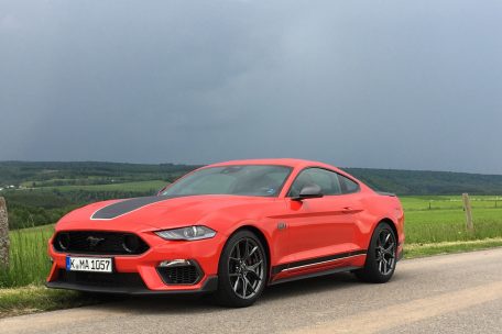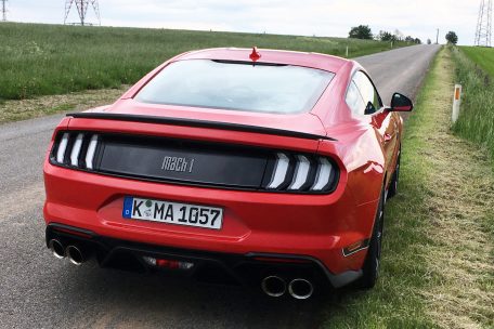 Der Ford Mustang Mach 1 ist ein Sondermodell mit 338 kW/460 PS aus einem 5-Liter-V8-Motor: Sein Look, sein technischer Aufwand und seine Performance lassen sofort erkennen, wo er eigentlich hingehört, nämlich auf die Piste. Dafür wurden Aerodynamik, Leistungsvermögen und Fahrverhalten im Vergleich zum Mustang GT verfeinert und angepasst. Der Mach 1 läuft 267 km/h Spitze mit 6-Gang manuellem Getriebe, mit 10-Gang-Automatik sind es nur 250 km/h, damit muss man leben. Der Antrieb erfolgt auf die Hinterachse. In 4,8 Sekunden schafft er die null auf hundert, mit Automatik sogar in nur 4,4 Sekunden. Sein Drehmoment beträgt 529 Nm bei 4900 U/Min., wer es gemütlich angeht, wird kaum in diesen Drehzahlbereich kommen und dennoch über genügend Antritt und Durchzugskraft verfügen, ohne den Ganghebel allzu intensiv betätigen zu müssen.
