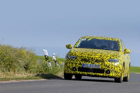 Was ist das? Es ist gut über 4 Meter lang, fährt auf vier Rädern und trägt ein gelb-schwarzes Tarnkleid wie aus geschredderten Trikots von Borussia Dortmund, vorne ragen nur die Scheinwerfer und Blinker, ein unterer Lufteinlass und das Kennzeichen von Groß-Gerau heraus, hinten blickt man auf eine gelb-schwarze Wand, da ist nichts, das erkennen lässt, dass es sich um den neuen Opel Astra handelt, der nun in der zweiten von vier geplanten Vorserien-Phasen eine Reihe von Tests durchläuft. Auch im Innenraum bleibt viel unter einem dicken Plastiküberzug versteckt, nur Tür- und Fensteröffner, Tacho mit einzelnen Funktionsdaten, Bedienung für Heizung und Klimaanlage und ein Teil der Mittelkonsole bleiben zugänglich. Wie die Kommandozentrale dann einmal aussehen wird, zeigte man uns in einem Briefing vor der Fahrt, hier wird sich alles um innovatives Design in einem modernen Umfeld mit zwei großen Displays drehen, die alle wichtigen Funktionen überwachen und bedienen. Dass sich die Front des neuen Astra an den Look des Mokka anlehnt, ist längst bekannt.