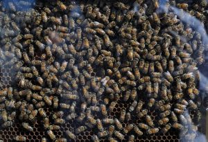 Zu seiner Imkerphilosophie gehöre, „die Bienen in ihrem Wohnhaus in Ruhe zu lassen. Ich fasse das ‚Herz‘ des Kastens nicht an, das gehört nur ihnen.“ Darin befindet sich der erste „Honigraum“, der mit Platten, teilweise mit aufgebauten Waben aus Wachs, ausgestattet ist. Die Insekten füllen in den schräg positionierten Waben ihren Nektar ab. Diese Neigung, welche auch die Bienen, wenn sie Waben errichten, stets einhalten, ist nötig, damit die kostbare Flüssigkeit nicht aus den Kästchen hinausläuft. Ist diese „Wohnetage“ l gefüllt, setzt der Imker eine weitere darauf. Vorwiegend die Ernte aus dem oberen Teil des Bienenstocks verarbeitet er, die Produktion der ersten Etage bleibt als „Nahrung“ für die Bienen im Kasten.