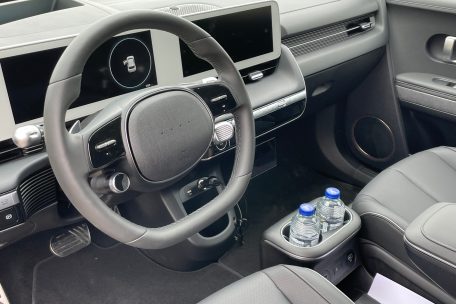 Der Gang-Wahlhebel befindet sich jetzt am Lenkrad, ein verschiebbares Multifunktionselement in der Mitte bietet vielfache Staumöglichkeiten, die Sitze haben eine Beinauflage und Relax-Funktion – wer sich beim Aufladen ein kleines Nickerchen gönnen will, ist hier bestens bedient. Auch die Rücksitze sind fast 14 cm weit elektrisch verschiebbar, das ergibt auch hinten großartige Komfortverhältnisse für die lange Fahrt, die sich bei diesem E-Auto auf mindestens 400 km Autonomie erstreckt. Polsterung und Textilien der Sitze wurden aus nachhaltigen Fasern, beispielsweise aus recycelten PET-Plastikflaschen, hergestellt, sogar in den Fußmatten sollen laut Hyundai alte Fischernetze aus einem Meeresschutzprojekt verarbeitet sein. Auf das Gewicht hat dies allerdings keinen großen Einfluss, der Ioniq 170 PS meldet immerhin 1.830 kg Leergewicht, der 218-PS-Fronttriebler mit großer Batterie kommt auf 1.910 kg und der Allradler auf 2.020 kg.