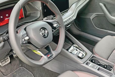 Der Octavia RS, in unserem Fall der Kombi, wird angetrieben von einem 2,0-Liter-Vierzylinder-Turbo-Benziner, der 180 kW/245 PS leistet und ein Drehmoment von 370 Nm hat, der Antrieb erfolgt über eine 7-Gang-DSG-Automatik, die im reinen Sportmodus voll in ihrem Element ist und sich im Eco- oder Komfort-Modus schon etwas Anlaufzeit gönnt, wenn man das Pedal durchdrückt. Im „Sport“-Modus dagegen kommt Freude auf, wenn der Vierzylinder kernig nach oben dreht und dabei einen Sound abgibt, der ausschließlich den Innenraum berieselt, nicht weniger Freude macht der Verbrauch, denn wir kamen nach gut über 500 km auf einen Durchschnitt von 6,9 Litern, dies ohne Ausflug auf eine deutsche Autobahn, was den Verbrauch sicherlich angehoben hätte. Man kann den Octavia RS auch sportlich bewegen, ohne gleich ans Limit zu gehen. Immerhin hat er enorm viel Platz, ein bestens verarbeitetes und hochwertiges Interieur mit Sportsitzen und einem vorbildlich angeordneten Cockpit und eignet sich daher vortrefflich als dynamisches Familien-Break, in dem Vati auch mal Sport-Feeling erleben darf.