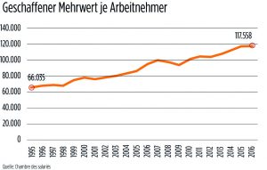 Obwohl die Produktivität sowohl in Luxemburg als auch EU-weit seit Jahren steigt, hinkt die Lohnentwicklung hinter den Produktivitätszuwächsen her. Das führt zu einer wachsenden Ungleichverteilung von Einkommen und Vermögen. Sprich: Der geschaffene Mehrwert fließt anteilmäßig zu einem wesentlich höheren Teil in die Taschen der Kapitaleigner als in die Gehälter an die Arbeitnehmer.