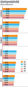 Produktivitätssteigerung realisieren sich in Luxemburg, mit einem Finanzsektor der 40% des BIP beeinflusst , sehr einfach : 1) mit der ABBL laut jammern 2) steuerliche Abschreibungen bis unter die Nase ausnutzen 3) Tarife erhöhen 4) das Personal bis aufs Blut ausbeuten und gleichzeitig die Lohnmasse dauernd reduzieren,h mit mittlerweile 3 Nullrunden im Kollektivvertrag und Ausdünnung des älteren Mitarbeiter ab 45 .