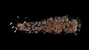 Eine Computertomografie zeigte bisher, dass in dem Sarg neben Knochen – darunter Fußknöchel, Zehen, ein Teil des Schädelknochens und des Kreuzbeins – mehr als 7.000 Perlen eines Beerdigungsschals und Harzfragmente liegen. Mit Harz wurden einst die Schädel von Mumien gefüllt, nachdem das Gehirn entfernt worden war.