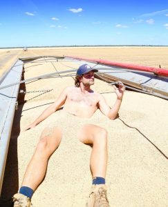 Ben Brooksbys Seiten im Internet finden deswegen immer mehr Anklang. Seit er die ersten Bilder im Mai 2017 auf Instagram geladen hat, hat der Australier über 34.000 Followers. Dabei sind die Bilder keineswegs pornografisch oder geschmacklos, sondern ästhetisch und vor allem witzig. Die meisten Farmer oder Farmerinnen zeigen sich von hinten oder seitlich und verdecken zu private Körperteile. Da steht ein Farmer inmitten seiner Weinreben, eine junge Frau ist im Sonnenblumenfeld, eine andere duscht vor roter Outback-Erde, eine ganze Horde an Farmern drapiert sich um einen Traktor, ein anderer steht im schlammigen Wasser, die nächsten auf Heuballen …