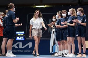 „Wir wollten dich nicht gehen lassen, ohne Danke zu sagen“, so Turnierdirektorin Danielle Maas: „Es waren immer tolle Momente mit dir. Wir sind enorm froh, dass du zum Abschied noch ein Match gewonnen hast. Ohne Geschenk wollen wir dich aber nicht gehen lassen.“ 2001 feierte die Luxemburgerin ihren ersten Auftritt bei ihrem heimischen Turnier, 20 Jahre später ihren letzten – ein großes Bild mit Fotos von jeder einzelnen ihrer Teilnahmen wurde ihr zum Abschied überreicht. Es gab viele weitere Geschenke.