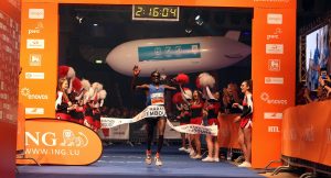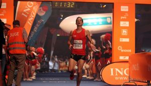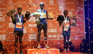 Bevor es losging, blockierten jugendliche Demonstranten die Startbahn und hielten den Läufern ein weißes Tuch mit der Aufschrift „ING against humanity (ING gegen die Menschheit)“ vor die Gesichter. Das Sicherheitspersonal machte jedoch kurzen Prozess mit den drei, sodass der Wettlauf ohne Verzögerung beginnen konnte.