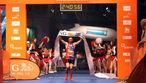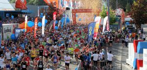 Mit dem Rücken zur gleißenden Sonne wuselten sich die Zigtausenden Teilnehmer durch blau-orangen Konfettiregen und begannen ihre 42- beziehungsweise 21-Kilometer-Odyssee. Für die Profis hieß es durchbeißen, denn sie strebten einen der vorderen Plätze an. Den meisten ging es hingegen darum, die eigenen Grenzen zu überwinden, Erfahrung zu sammeln oder persönliche Bestzeiten aufzustellen.