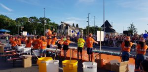 Eine Veranstaltung dieser Größenordnung zu managen, ist keine einfache Angelegenheit. Rund 2.500 Mitarbeiter und 180 Einsatzkräfte des Rettungsdienstes waren daran beteiligt, dass der „ING Night Marathon“ ohne größere Zwischenfälle über die Bühne ging. Viele Teilnehmer und Zuschauer lobten die hervorragende Organisation des Events. „Freunde von uns haben an mehreren Marathons im Ausland teilgenommen und sagen uns jedes Jahr, dass die Wettläufe nirgendwo so reibungslos verlaufen wie hier“, erzählte ein älteres Paar dem Tageblatt, das den Teamlauf seiner Söhne mitverfolgte. Ähnlich äußerten sich vier Freunden, die gerade den Halbmarathon gemeistert hatten und sich mit Pizza belohnten: „Es ist immer wieder erstaunlich, was hier für eine Stimmung herrscht. Sogar Menschen, die dich überhaupt nicht kennen, lesen deinen Namen auf dem Trikot und feuern dich an.“