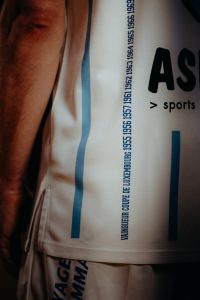 Die letzte Saison war im Mai gerade erst zu Ende gegangen, da machte sich Frédéric Gutenkauf bereits Gedanken über die neue. Für die anstehende Saison des 90. Vereinsjubiläums wollte der Etzella-Kapitän nämlich besondere Trikots entwerfen. Gemeinsam mit Joe Jungels, einem guten Freund und Vorstandsmitglied des Vereins, saß der Spieler über den gesamten Sommer somit viele Abende zusammen, mit dem Ziel, 90 Jahre Klubgeschichte in einem Trikot unterzubringen. „Wir haben uns das Buch des 75. Vereinsjubiläums vorgenommen und uns die Bilder angeschaut“, erklärt der Spielführer. Schnell war klar, dass man auf das Logo verzichten möchte, das es früher so noch nicht gab, und stattdessen groß Etzella über die Brust geschrieben haben wollte. „Etzella war auf vielen Trikots im Bogen geschrieben und darunter stand ebenfalls in Buchstaben Ford, da die Familie Wengler schon ewig Sponsor des Klubs ist.“ Es war eine erste konkrete Umsetzungsidee, doch das war längst nicht genug, und es ist schon bemerkenswert, wie viele Bedeutungen man im Endeffekt auf einem einzigen Stück Stoff unterbringen kann.