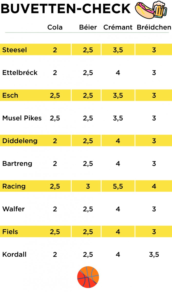 Die dritte Halbzeit – in Luxemburg ist sie fast genauso wichtig wie das Sportliche, das sich vor den Augen der Zuschauer abspielt. Aus diesem Grund haben die Basketball-Korrespondenten des Tageblatt die Theken der Total League einmal genauer unter die Lupe genommen. Wo ist für das leibliche Wohl der Basketballfans am besten gesorgt? Wer hat die kreativsten Einfälle? Für die Tageblatt-Korrespondenten gibt es jedenfalls einen klaren Sieger.