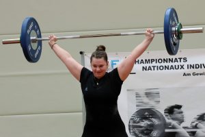 Muriel Schu vom „Klengen Stemmveräin Diddeleng“ lief zur Hochform auf und stellte drei Luxemburger Rekorde auf. Auch sie bewies (Nerven-)Stärke im Reißen: Nachdem sie den zweiten Versuch von 75 kg verrissen hatte, brachte sie 77 kg zur Strecke. Im Stoßen peilt sie die Zwei-Zentner-Grenze an: All ihre Versuche waren gültig und mündeten in eine neue nationale Bestmarke von 97. Das Gesamtergebnis von 174 ist ebenfalls ein Rekord.