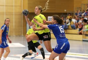 Beide Teams agierten weiterhin nervös – das Spiel glich einem offenen Schlagabtausch. Tina Welter erhöhte den Käerjenger Vorsprung in der 26. mit einem Doppelpack auf 9:7. Torhüterin Solomija Szywerska hatte einen hervorragenden Tag erwischt und parierte mit ihrer bereits siebten Parade den nächsten Düdelinger Angriff. Marin verwandelte von der Siebenmeterlinie zum 10:7. Käerjeng war nun die spielbestimmende Mannschaft und Welter brachte die Käerjengerinnen vor der Pause mit zwei weiteren Toren 12:8 in Führung.