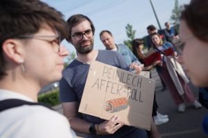 Auch der Aktivist Theo äußerte sich auf der Kundgebung: „Fußball ist ein schöner Sport. Menschen, die im Alltag Gewalt ausüben, sollten nicht die Werte dieses Sports vertreten – schon gar nicht, wenn sie das Nationalteam repräsentieren.“ (DJ)