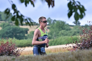 Doch der sintflutartige Regenschauer machte ihnen einen Strich durch die Rechnung. „Wir wollten mindestens bis zum letzten Berg vor ihm bleiben, wussten, dass er einfach viel stärker auf dem Rad ist. Wir haben gemeinsam eigentlich auch gut funktioniert, denn alleine auf dem Rad, auf so einer Strecke, ist es immer schwer“, erzählten sie im Ziel. Doch Carré stürzte in der zweiten Runde, Lieners wartete, stürzte selbst dann aber eine Runde später, auch wenn beide betonen, dass sie sehr vorsichtig unterwegs waren. Doch der Belag auf den Straßen war nach den vielen trockenen Wochen im Endeffekt fast schon wie Seife. „Das ist natürlich blöd, weil das einen jedes Mal 15 bis 20 Sekunden kostet“, erklärt Lieners. Auch wenn sich beide nicht schwerer verletzten, schaffte es Miny, aufzuschließen und das Duo am letzten Anstieg abzuhängen. „Ohne die Stürze hätte er uns vielleicht erst nach dem letzten Anstieg eingeholt, dann hätte es gut sein können, dass wir zu dritt auf den Laufparcours gehen. Das wäre ein sehr interessantes Rennen geworden“, bedauerte der CAB-Athlet im Ziel. Die Laufzeiten des Trios unterschieden sich am Ende nicht zu sehr, doch sein Vorsprung von knapp 50 Sekunden, mit dem Miny zur letzten Disziplin wechselte, waren für seine Konkurrenz nicht mehr einzuholen.