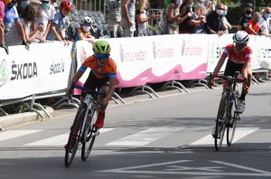 Eine Überraschung gab es ebenfalls in der Altersklasse der Débutants, wo sich Noa Berton (CT Atertdaul) im Sprint der elf Mann starken Fluchtgruppe vor Nik Gremling (UC Dippach) und Mats Berns (LP Schfflingen) behaupten konnte. Topfavorit Mathieu Kockelmann (CCI Differdingen) hatte Pech und war Mitte der Renndistanz plattgelaufen. Der fünffache Landesmeister verpasste den Anschluss an die Spitzengruppe um 33“ und musste sich nach 54 km mit Platz zwölf unter 28 Teilnehmern abfinden. Nach seinem Titel bei den Cadets vor Jahresfrist konnte sich Noa Berton über sein zweites rot-weiß-blaues Trikot freuen: „Letzte Woche in Cessingen war ich gleich nach zwei Kilometern gestürzt. Dabei ging mein Rad zu Bruch und ich kam mit Schürfwunden davon. Im Gegensatz zum Rennbeginn hatte ich in der letzten Runde ein gutes Gefühl. Ich hab mich selbst überrascht, da meine Stärken eigentlich nicht im Sprint liegen.