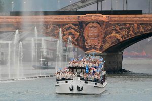 Die reiche Historie der mehr als 2000 Jahre alten Metropole Paris bildete nun den Rahmen der olympischen Eröffnungsfeier. An zwölf Stationen auf einem sechs Kilometer langen Abschnitt der Seine, der an den wichtigsten Wahrzeichen der Hauptstadt wie Notre-Dame, dem Louvre, dem Grand Palais und schließlich dem Eiffelturm vorbeiführte, stellte sich Frankreich kunterbunt da. „Seine-sational“, fand das unter anderem die englische Boulevard-Zeitung The Sun.