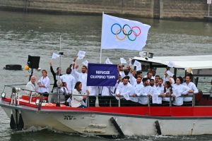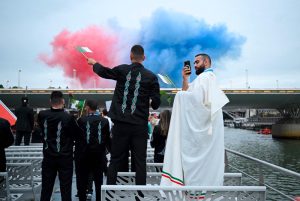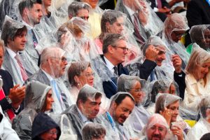 Nun waren diese in Scharen gekommen – wenngleich nicht alle: US-Präsident Joe Biden etwa ließ sich von seiner Frau Jill vertreten. Auch der ukrainische Präsident Wolodymyr Selenskyj fehlte – die Sportler aus dem vom Krieg zerrütteten Land wurden dafür mit großem Beifall auf ihrer Bootsfahrt gefeiert. Als Vertreter Deutschlands gesellte sich Bundeskanzler Olaf Scholz zu den rund 120 anwesenden Staats- und Regierungschefs. Die VIP-Tribüne allerdings leerte sich angesichts der Regens schnell.