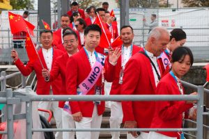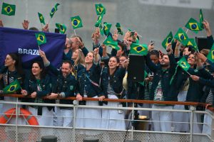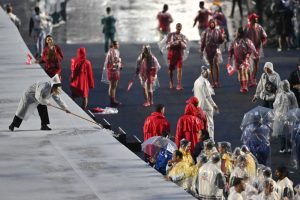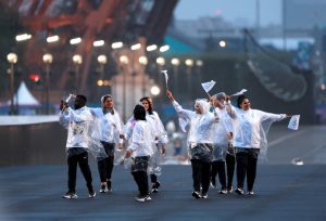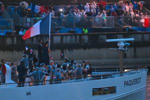 Um 22.54 Uhr sprach Macron am Trocadero in Sichtweite des Eiffelturms dann gut beschirmt den entscheidenden Satz: „Ich erkläre die Spiele von Paris zur Feier der 33. Olympiade der Neuzeit für eröffnet.“ Nach einem stundenlangen Wolkenbruch, der selbst einen Teil der Staatsoberhäupter auf der Ehrentribüne pitschnass zurückließ, fiel der Startschuss zum Mega-Sportfest, das in heiklen Zeiten für heitere Tage sorgen soll.