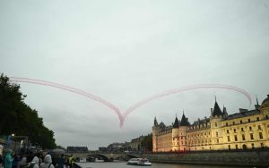 Brandanschläge auf technische Anlagen hatten weite Teile des französischen Bahnverkehrs lahmgelegt. Premierminister Gabriel Attal sprach von „koordinierten und vorbereiteten Sabotageakten“. Rund 800.000 Fahrgäste waren betroffen, auf die Eröffnungsfeier hatte dies laut Bürgermeisterin Anne Hidalgo „keine Auswirkungen“. Das „Jahrhundertereignis“ konnte wie geplant um 19.30 Uhr beginnen.
