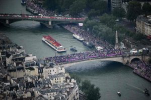 600.000 Zuschauer waren ursprünglich für die revolutionäre Feier an und auf der Seine vorgesehen gewesen, aus Sicherheitsgründen wurden es letztlich 320.000 auf 124 Tribünen. Es war dennoch die mit Abstand größte Party der olympischen Geschichte, die auf eine der kleinsten folgte: Bei der Eröffnungsfeier der „Coronaspiele“ 2021 in Tokio waren im riesigen Stadion nur 1000 geladenen Gäste dabei, darunter gerade einmal 15 Staatsoberhäupter.