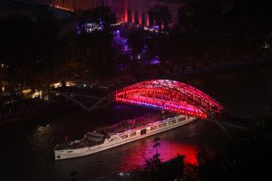 Findige Historiker hatten ermittelt, dass die Eröffnungsfeier das größte Ereignis auf der Seine seit 285 Jahren war – am 29. August 1739 hatten die Hochzeits-Feierlichkeiten der zwölfjährigen Louise-Elisabeth, Tochter von König Ludwig XV., und des spanischen Infanten Philipp Prunk-Maßstäbe gesetzt.