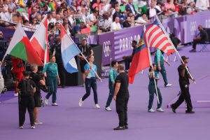Die Feier nahm den Faden der Eröffnungszeremonie auf und begann in den Tuilerien am Louvre. Dort trat Schwimm-Superstar Léon Marchand an das olympische Feuer. Der viermalige Olympiasieger von Paris trug die Flamme in einer Laterne in Richtung des weltberühmten Museums, später am Abend erreichte sie das Stade de France – und wurde von Athleten aller Kontinente gelöscht.
