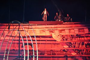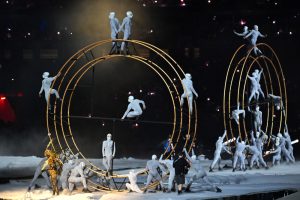Über 71.000 Zuschauer und 9.000 Athleten und Betreuer aus 205 Delegationen verfolgten den Abend in Frankreichs Nationalstadion. Nach den Gassenhauern „Aux Champs-Élysées“ und „We are the champions“ begann der künstlerische Teil des Abends. Wie schon bei der spektakulären Eröffnungszeremonie auf der Seine war Thomas Jolly als künstlerischer Leiter auch für den Schlussakkord verantwortlich. Mit über 250 Künstlern, Akrobaten und Tänzern wurde das Stade de France zu einem Theater. Ganze 35 Tage dauerten die Proben für die Show.