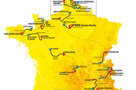 „Wir haben beschlossen, die Tour nach Hause zu holen, es war Zeit nach all den Starts im Ausland“, sagte Renndirektor Christian Prudhomme bei der Streckenpräsentation im Pariser Kongresspalast am Dienstag. Erstmals seit fünf Jahren wird die Große Schleife zudem vollständig auf französischem Boden ausgetragen. Im Programm stehen sechs Bergankünfte, sieben Flachetappen und sechs hügelige Teilstücke, zudem zwei Einzelzeitfahren, eines davon bergauf.
