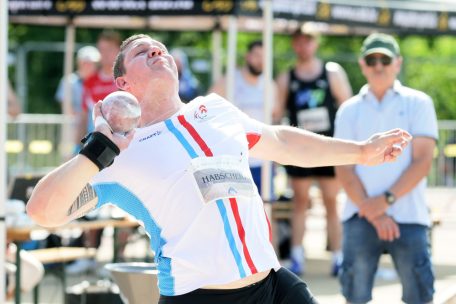 Donnerstag um Punkt 16.47 Uhr betrat Bob Bertemes im Stadion „seines“ CA Beles zum allerletzten Mal den Kugelstoßring, der extra für diesen Wettbewerb Richtung Rasenfläche gedreht wurde, da die eigentliche Kugelstoßzone schon lange nicht mehr für die Weiten des prominentesten CAB-Athleten ausreichte. Mit dem letzten Stoß auf 20,19 Meter löste sich dann eine Menge Ballast, da nun ein neues Lebenskapitel für den bisherigen Sportsoldaten beginnt. Aber auch diese letzte Aufgabe nahm Bertemes nicht auf die leichte Schulter: „Ich war schon nervös, da ich wusste, dass es sehr speziell und emotional werden würde. Zudem sind viel mehr Leute gekommen, als ich es erwartet hatte. Als Meeting war es genau das, was ich mir gewünscht hatte, und es war toll, mich mit den besten Freunden noch mal zu amüsieren.“