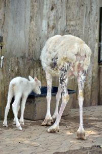 Nicht nur die weiße Farbe sei eine Riesenüberraschung gewesen, sagt Persch-Jost, die seit dem Sommer 2012 mit ihrem Mann das Gehege betreibt. „Wir wussten bis vor drei Wochen gar nicht, dass Mutter Mari schwanger war.“ Eigentlich hätte das gar nicht sein können. „Wir hatten dem Bullen Dancer einen Hormonchip eingesetzt.“