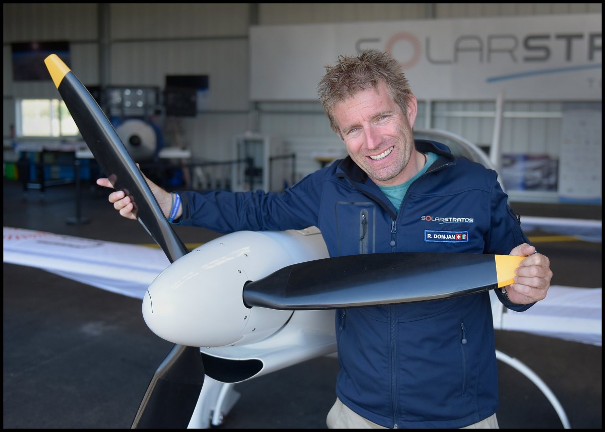 Der 46-Jährige wirkt wie ein lockerer Strahlemann mit Surfer-Allüren. Gleichzeitig versprüht Raphäel Domjan eine gewaltige Portion Begeisterungsfähigkeit und eine scheinbar unendliche Sachkenntnis. Er ist das Aushängeschild der SolarStratos-Gesellschaft, der der gebürtige Luxemburger Roland Loos als CEO vorsteht. Um das Vorhaben einleuchtend zu erläutern, werden die Besucher bei SolarStratos zuerst an einem hauseigenen Museum vorbeigelotst. Respektvoll, gar andächtig erläutert Domjan jede einzelne Großtat im Gebiet der solarangetriebenen Fortbewegungsmittel: Solar One, Solar Challenger, Solar Taxi, Sun 21, Planet Solar oder auch Bertrand Piccards Solar Impulse. Mit Piccard ist Domjan eng befreundet und kann so zu jeder Zeit auf dessen Unterstützung zählen.