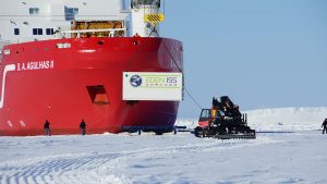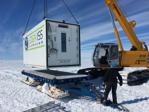 Ein südafrikanisches Forschungsschiff hatte die beiden Container vergangene Woche am Ekström-Schelfeis abgeliefert. Ein Kran setzte diese auf große Schlitten. Schubert und sein Team zogen diese dann mit Pistenbullys von der Schelfeiskante etw